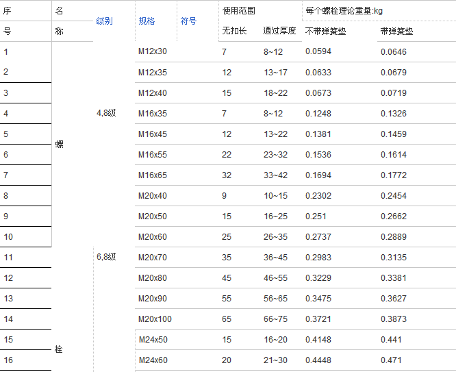鐵塔螺栓規(guī)格